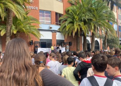 Durante el recreo, las etapas de Primaria, ESO y Bachillerato se reunieron en un acto conjunto para rememorar lo ocurrido y expresar su agradecimiento a los voluntarios que ofrecieron su ayuda en los momentos más difíciles. Alumnos y profesores afectados han leído un manifiesto cargado de sentimiento, emoción y gratitud. Al final en vez de un minuto de silencio, ha tenido lugar un minuto de aplausos.