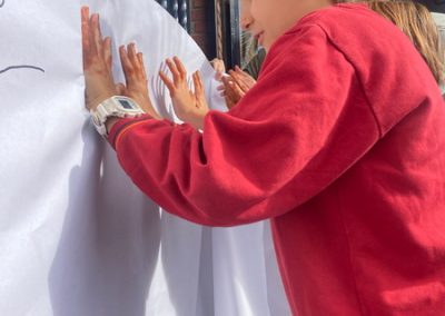 Uno de los gestos más simbólicos fue protagonizado por los delegados de Primaria, quienes plasmaron sus manos llenas de barro sobre una gran pancarta, como recordatorio del esfuerzo y la unión que surgieron tras la catástrofe. Este acto buscó transmitir que, incluso en medio del barro y la destrucción, la esperanza y la colaboración pueden florecer.