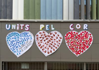 Por otra parte en educación infantil también hicieron un gesto rellenando tres grandes corazones con lazos, corazones y manos de barro.