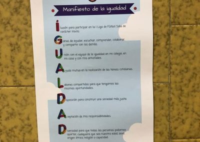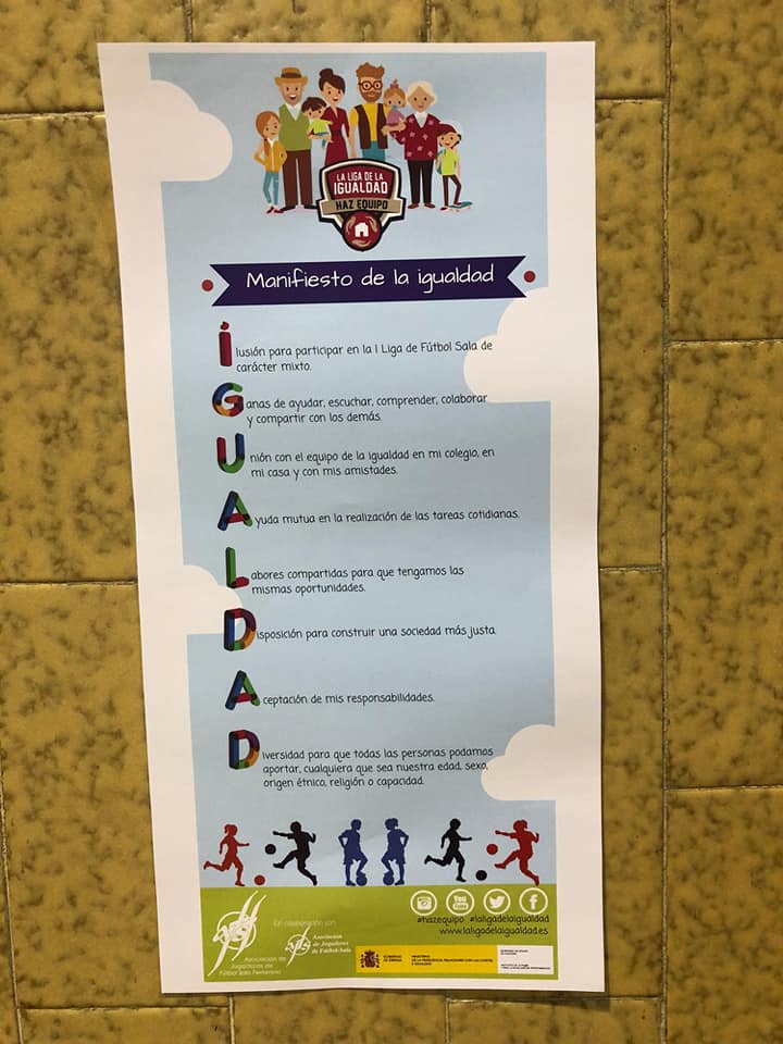 El Instituto de la Mujer y para la Igualdad de Oportunidades ha organizado la I Liga de Fútbol Sala de carácter mixto, que ha tenido lugar el sábado, 15 de septiembre, en el Consejo Superior de Deportes de Madrid. Un total de 10 colegios finalistas han participado en este evento, entre los cuales se encontraba el Colegio Salesiano San Juan Bosco de Valencia. El objetivo de la actividad, hacer una sociedad más igualitaria, justa y enriquecedora para todas las personas.