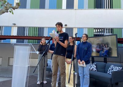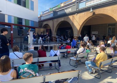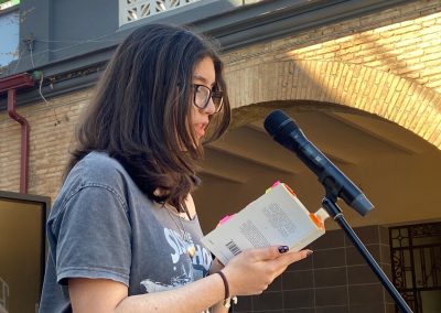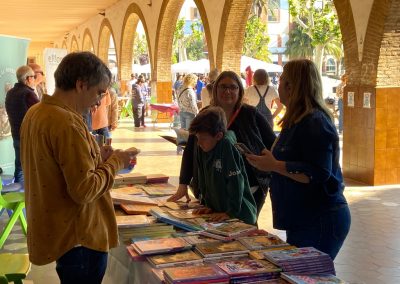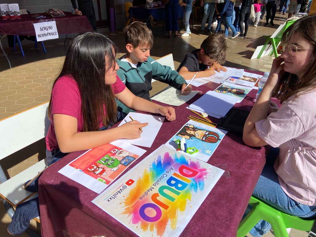 La jornada contó con un despliegue de talento gracias a la participación de escritores e ilustradores: Iván Alfaro, Mariel, Sergio Hernández, Nacho Golfe, Miguel Borque, Àngels Duart, Diana Bon, Carlos Gómez, Mª Isabel Ballestero, Pilar Mínguez, Paco Teruel, Irena Bernabéu, Mª Pilar López, Ricardo Torres y Raquel Belert. Sus encuentros con el público, junto al apoyo de editoriales como Micomicona, Bonica Editorial, Edebé, Bromera y Algar, ofrecieron una oferta bibliográfica rica y variada. Un momento destacado fue la entrega de diplomas y premios de los concursos literarios del Departamento de Lenguas, un acto en el que el AMPAS participó activamente como patrocinador de los premios. Todo el evento estuvo ambientado por recitaciones y lecturas de fragmentos en diversos idiomas, lo que aportó un matiz políglota y universal a la mañana.