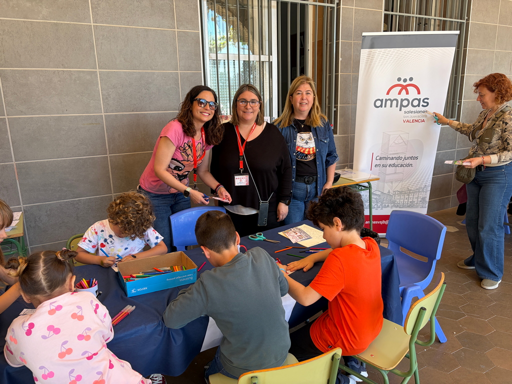 El corazón de la feria volvió a latir gracias al alumnado voluntario de ESO y Bachillerato, quienes lideraron talleres creativos de lettering, anime, emojiletras, diseño de marcapáginas, arte medieval, Trisquial y el universo de Julio Verne. Entre cuentacuentos, teatro de sombras y el uso de máquinas de escribir antiguas, la jornada se convirtió en una mañana de convivencia en la que los más pequeños fueron los protagonistas. Esta energía juvenil se trasladó también a la vertiente solidaria: el mercadillo de libros usados logró recaudar 905,50 euros. Esta cantidad se donará íntegramente a la ONGD salesiana Bosco Global para el proyecto de emergencia en el Líbano, uniendo nuestra pasión por la lectura con el espíritu salesiano de servicio.